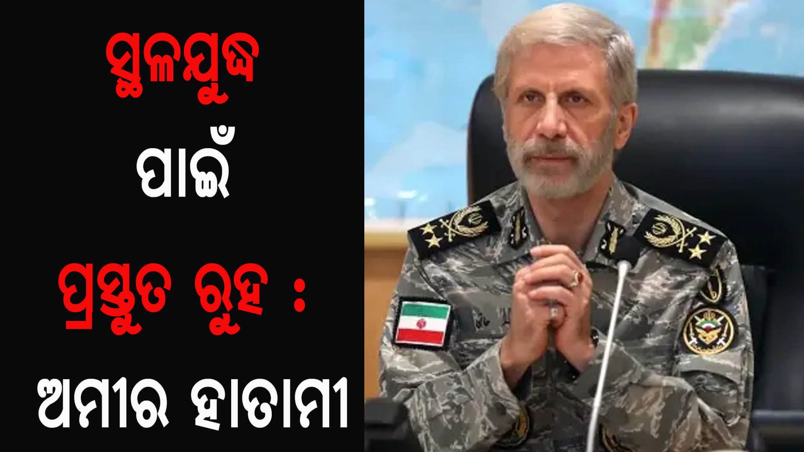 ଆମେରିକା ବିରୋଧରେ ସ୍ଥଳଯୁଦ୍ଧ ପାଇଁ ପ୍ରସ୍ତୁତ ରହିବାକୁ ଇରାନ ସେନାମୁଖ୍ୟ ଜେନେରାଲ ଅମୀର ହାତାମୀ ନିଜର କମାଣ୍ଡରମାନଙ୍କୁ ନିର୍ଦେଶ ଦେଇଛନ୍ତି ।