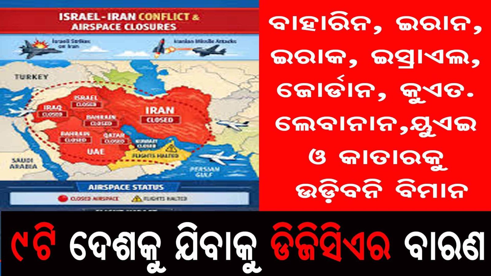 ଉକ୍ତ ସର୍କୁଲାର ଅନୁଯାୟୀ ମଧ୍ୟପ୍ରାଚ୍ୟର ୯ଟି ଦେଶକୁ ବିମାନ ଚଳାଚଳ ନ କରିବାକୁ ସତର୍କ କରାଯାଇଛି ।